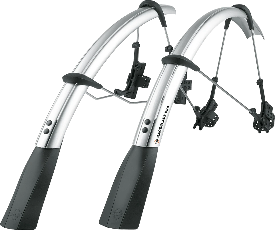 De SKS Raceblade Pro zijn een praktische set spatborden. Deze ‘Clip-On’ beschermingsset is geschikt voor race- en crossfietsen met een bandenbreedte tot max. 32 mm. Het gemakkelijke, tweegewricht Quick-Release-bevestigings-systeem past ook op Aero-vorken en bij schijfremmen.