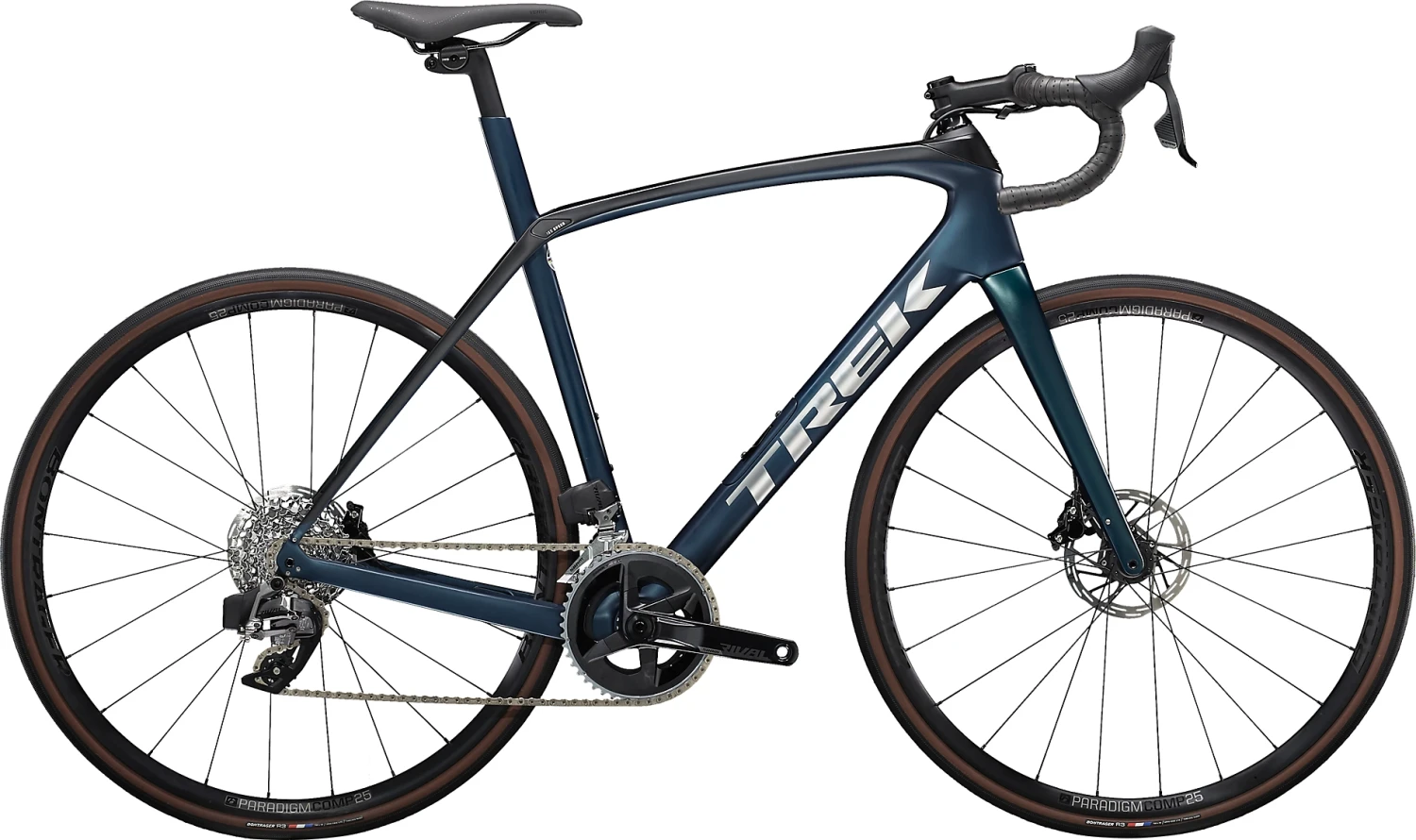 De Trek Domane SL 6 eTap is een prestatiegerichte endurance racer die niet alleen verrassend aerodynamisch is voor een endurance racefiets, maar ook gigantisch nauwkeurig schakelt dankzij de vernieuwde Sram Rival AXS 2×12 versnellingsgroep. De AXS technologie bewijst zich al jaren op de Red en Force groepen en is nu ook beschibaar in het iets voordeligere segment. De groep maakt gebruik van dezelfde software en technologieën als de Red en Force groepen, maar weegt een stukje meer. Daardoor is het wel een stuk vriendelijker voor je portemonnee.
