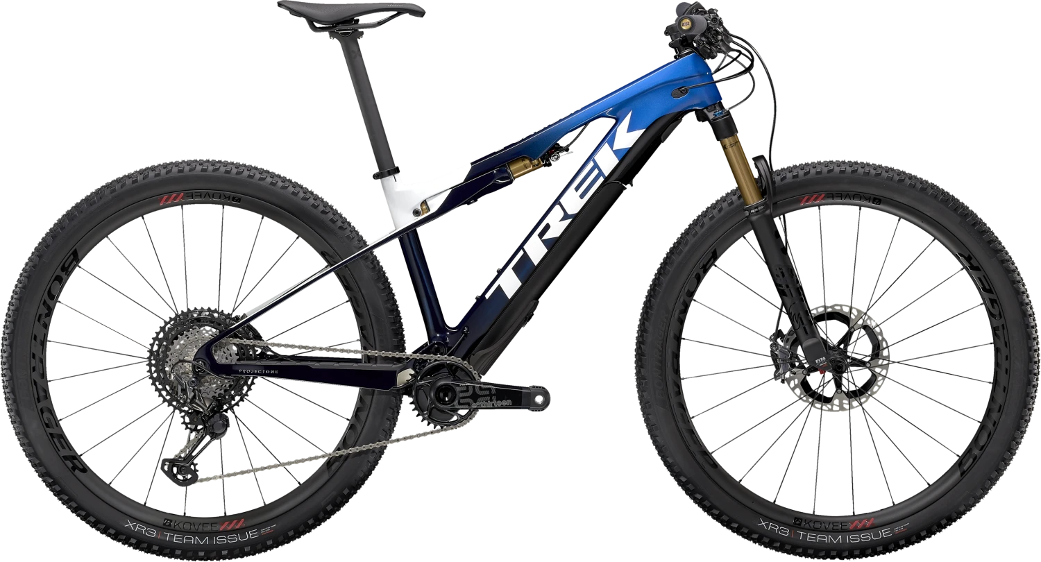 De Trek E-Caliber 9.9 XTR is één van de topmodellen in de gloednieuwe serie elektrische mountainbikes van Trek. De fiets rijdt als een traditionele full suspension mountainbike, terwijl je dankzij de Fazua motor een prettig steuntje in de rug ervaart. Deze E-MTB is uitstekend geschikt voor de Nederlandse XC trails. De E-Caliber 9.9 XTR rijdt namelijk lekker stabiel dankzij de iets vlakkere hoek van de voorvork. In de afdaling behoud je dankzij de Fox Factory 34 voorvork en de Trek IsoStrut achterdemper goed de controle over je fiets. Bovendien zorgt de Kashima coating op de voorvork en achterdemper voor dat ze altijd soepel blijven werken. Doordat je in de klim een steuntje in de rug hebt kun je optimaal genieten van het mountainbiken!