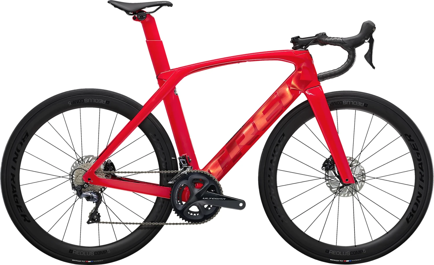 De Trek Madone SL 6 2022 is een aerodynamische racefiets die jouw schreeuw naar snelheid kan beantwoorden. De Trek Madone serie heeft zich in de afgelopen jaren breed bewezen als ultieme racefietsen met geweldige aerodynamische prestaties. De Madone SL 6 biedt jou superieure rijkwaliteiten, dankzij de goede onderdelen en het goed ontwikkelde frame. Het frame is vervaardig uit 500 Series OCLV Carbon, een sterke carbon soort waardoor jij op je fiets kunt vertrouwen. De buizen zijn volgens het Kammtail principe gebouwd, waardoor je werkelijk door de wind heen kunt snijden. Normaal zou je aerodynamische prestaties niet gelijk koppelen aan comfort, maar dankzij de Adjustable IsoSpeed Decoupler heb je de beschikking over verticale demping, die je naar wens kunt instellen. Zo zit jij snel, maar comfortabel op de fiets.